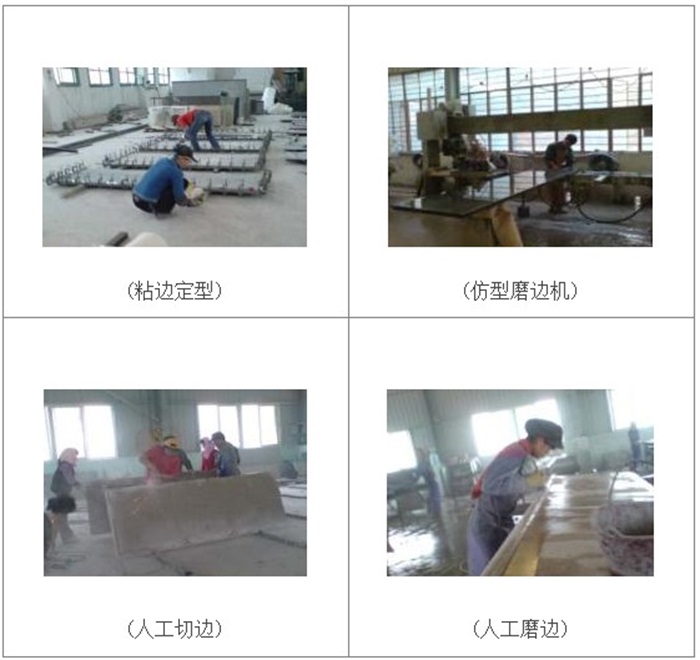 選料→大切→磨光→切邊→邊加工→挖盆鉆孔→磨光修補(bǔ)→試拼檢驗(yàn)→包裝→完工